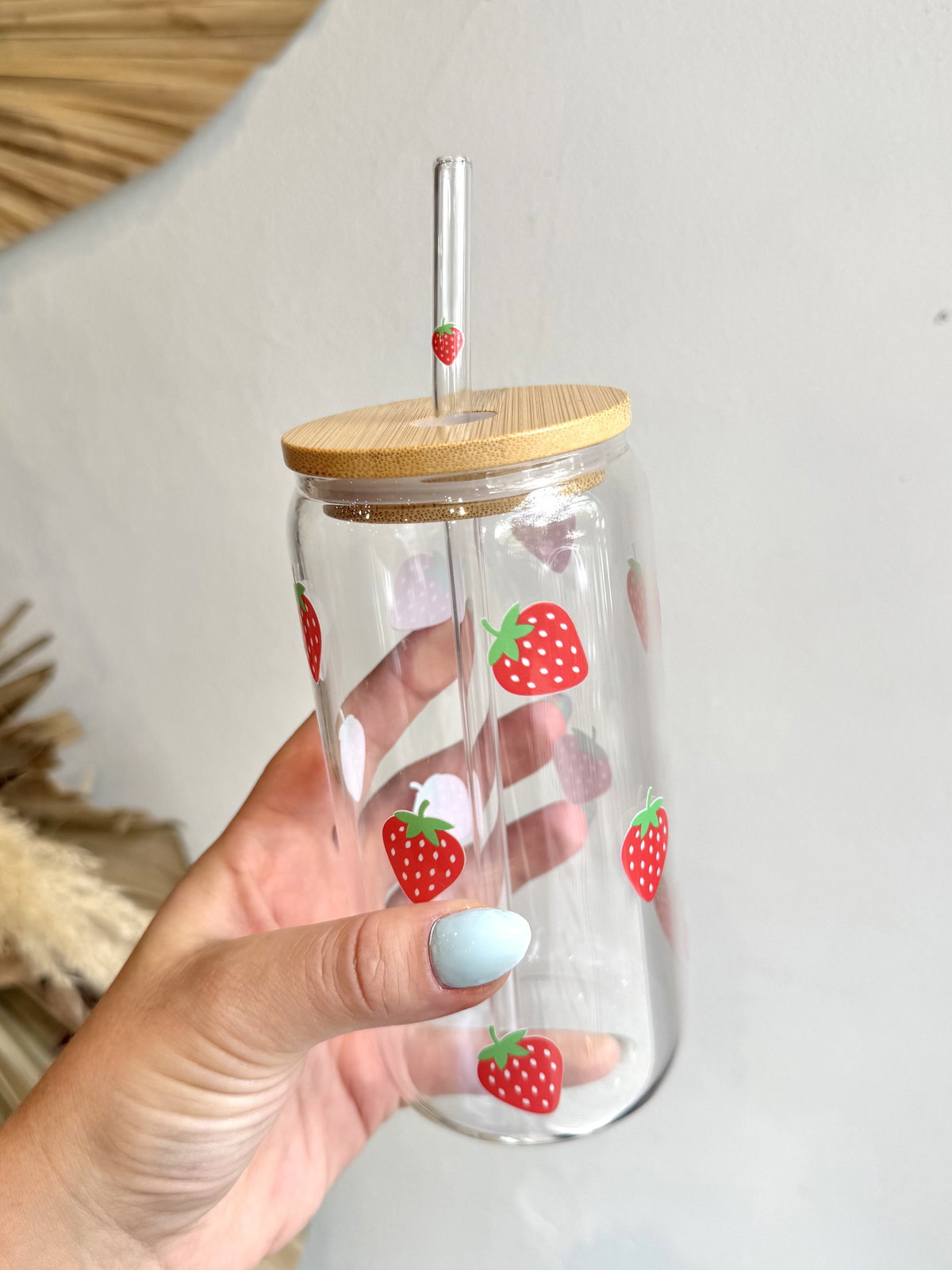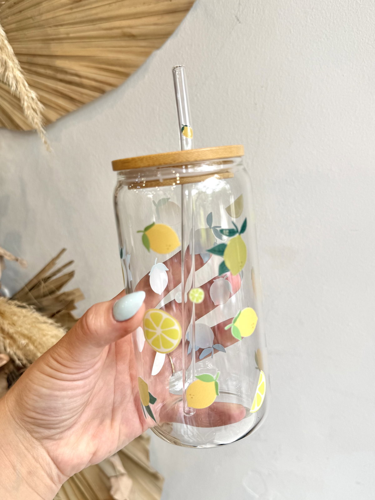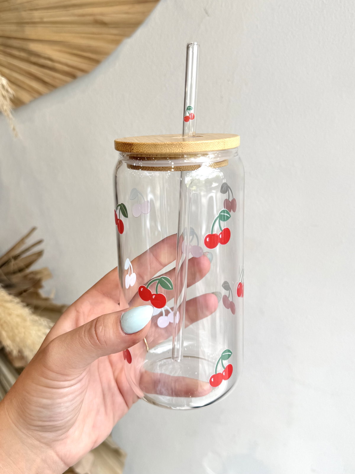 Vaso de vidrio con diseรฑos รบnicos! Ideales para tomar bebidas frias como licuados, cafรฉs, jugos, etc.