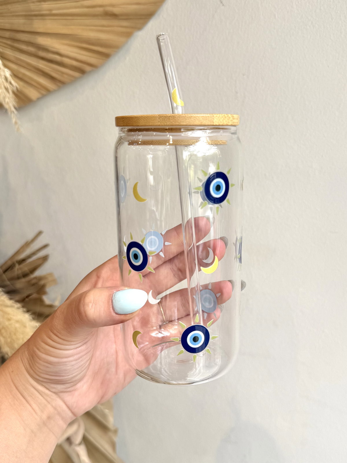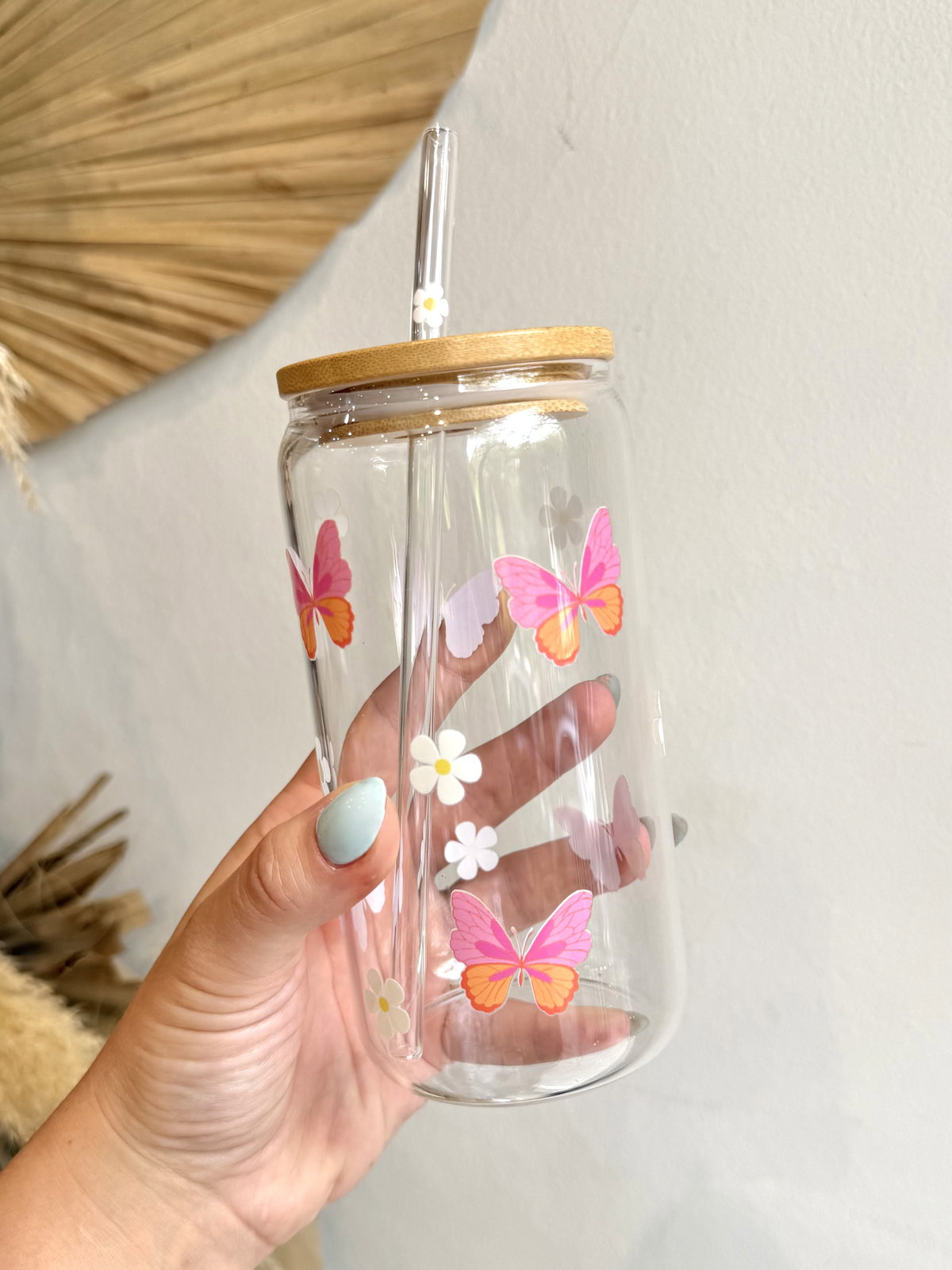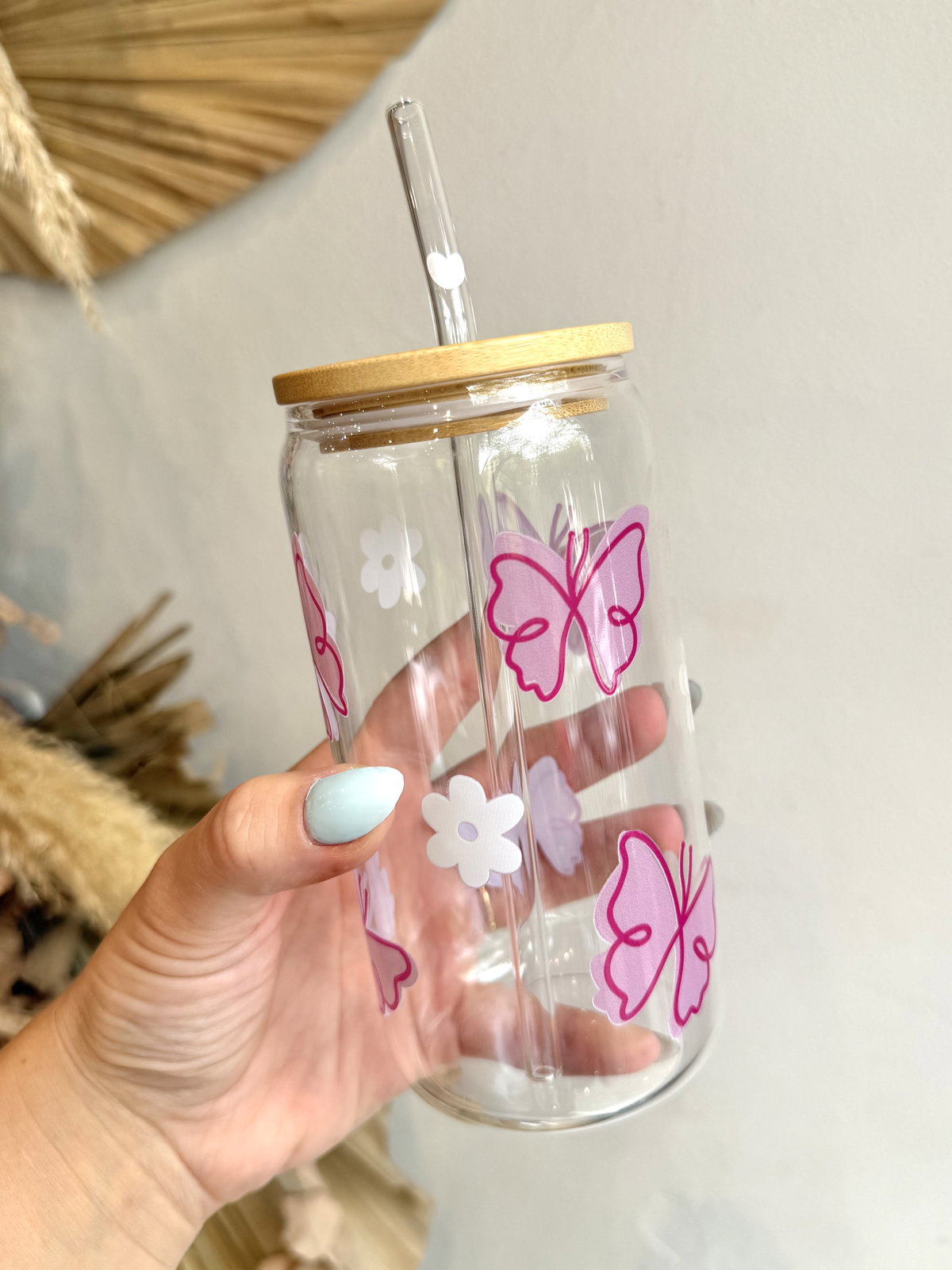 Vaso de vidrio con diseรฑos รบnicos! Ideales para tomar bebidas frias como licuados, cafรฉs, jugos, etc.